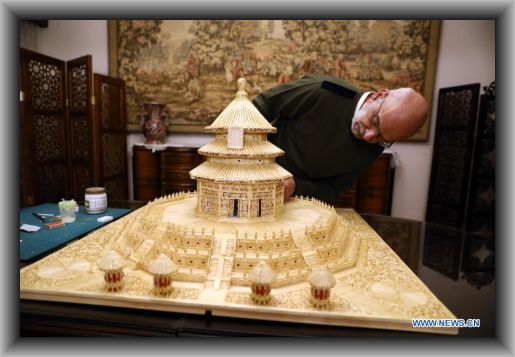 Mısır’ın başkenti Kahire’de yaşayan radyolog Ahmed Hassan, 22 bin kibrit çöpünü kullanarak Çin’in ünlü Cennet Tağınağı’nının minyatürünü inşa etti.