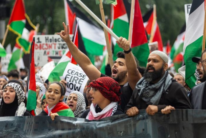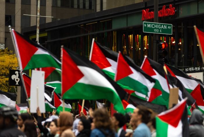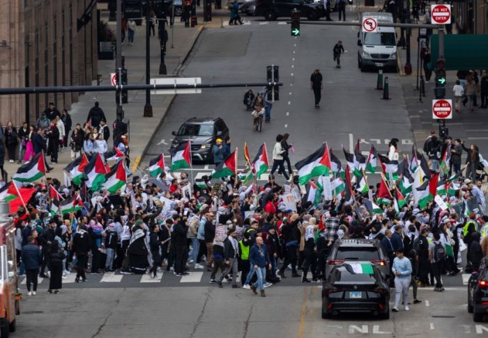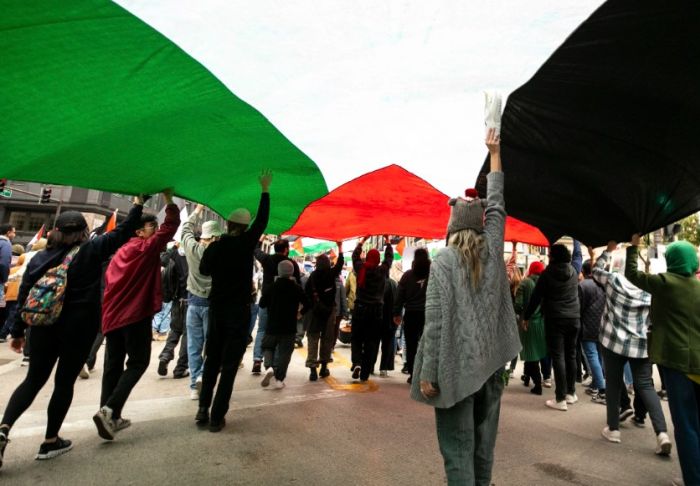 CHICAGO, 22 Ekim 2023 (Xinhua) — Amerika Birleşik Devletleri’nin (ABD) Chicago kentinde Filistinlilere destek vermek için yürüyüş düzenlendi.