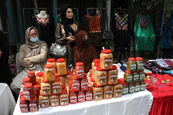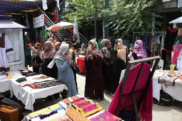 Afganistan’ın başkenti Kabil’de düzenlenen kitap ve el sanatları sergisi, 12 Nisan 2022. (Fotoğraf: Saifurahman Safi/Xinhua)