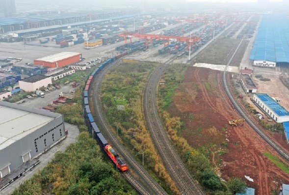 Xinhua’dan Tang Yi,Almanya’nın Duisburg kentine gitmek üzere Çin’in güneybatısında bulunan Chongqing belediyesinin Tuanjiecun istasyonundan kalkan bir Çin-Avrupa yük treni görüntüledi.