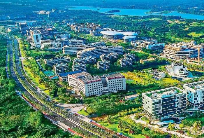 Hainan’ın özel gümrük işlemlerinin, Hainan’a akan yabancı malların kurumsal maliyetlerini önemli ölçüde azaltması bekleniyor. Yukarıda Hainan Eyaletinin Haikou Şehrinde, Fullsing İnternet Sanayi Parkı’ndaki internet inovasyon gösteri üssü görülüyor.