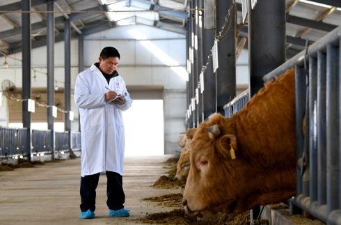 Araştırmacı Lin Fengpeng, Henan Eyaleti, Biyang İlçesindeki bir çiftlikte sığırların durumunu kaydediyor.