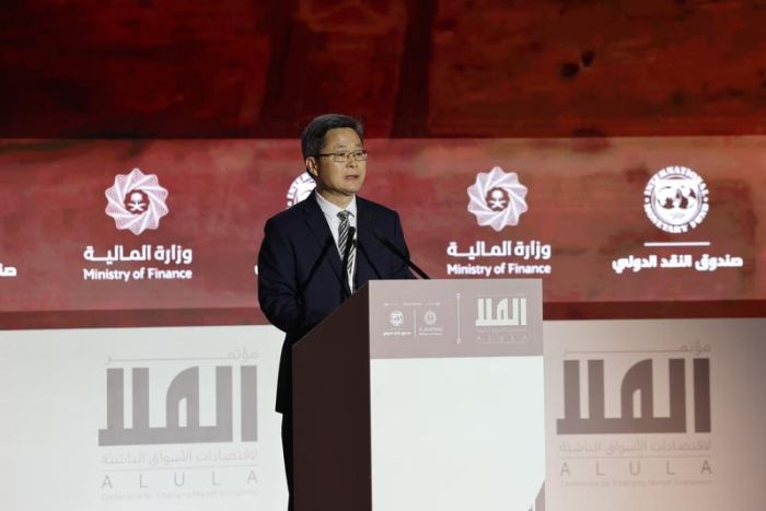 EL ULA, 9 Şubat (Xinhua) — Suudi Arabistan’ın El-Ula kentinde düzenlenen El Ula Yükselen Piyasa Ekonomisi Konferansı’nın ikinci oturumunda konuşma yapan Çin Maliye Bakanı Lan Fo’an, 8 Şubat 2026.