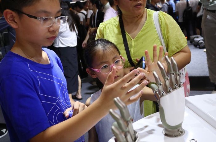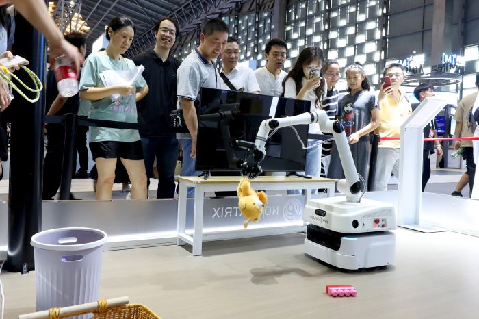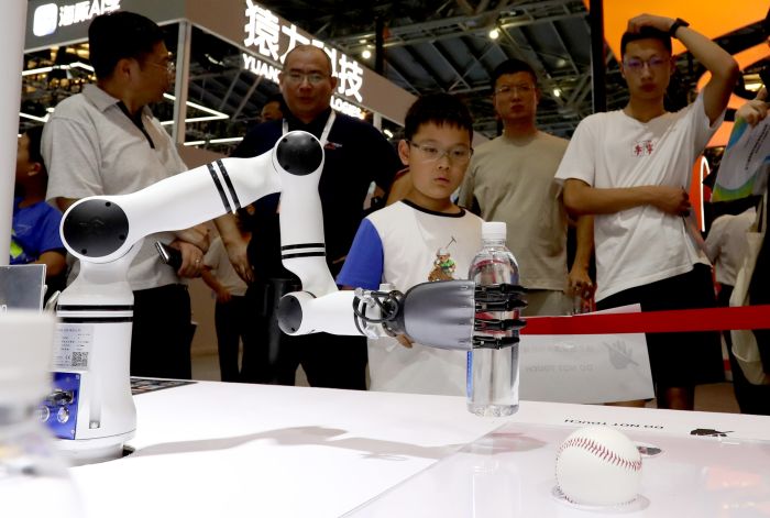 SHANGHAİ, 7 Temmuz (Xinhua) — Çin’in doğusundaki Shanghai kentinde düzenlenen 2024 Dünya Yapay Zeka Konferansı’nda yapay zeka destekli ürün ve uygulamalar yoğun ilgi görüyor. Çin’in doğusundaki Shanghai kentinde düzenlenen 2024 Dünya Yapay Zeka Konferansı’nda bir robotla Çin satrancı oynayan çocuk, 6 Temmuz 2024. (Fotoğraf: Fang Zhe/Xinhua)