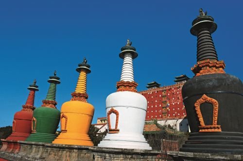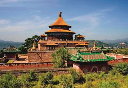 Tapınaklar özellikle Tibet ve Han tarzlarında inşa edilmiş; bazıları iki tarzı birleştiriyor. Yapılar imparatorluğun ihtişamını yansıtan rafine teknikler içeriyor ve Han, Tibet, Moğol mimarisi ve kültürünün özünü birleştiren modeller olarak değerlendiriliyor.
