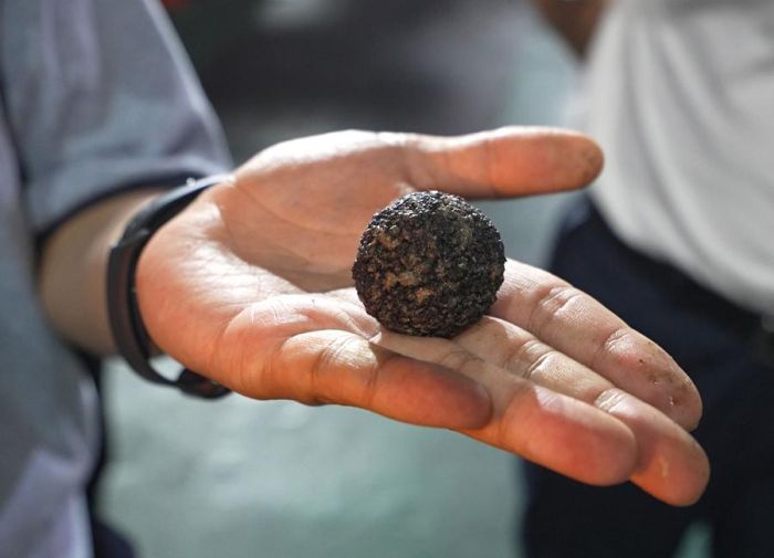 Havadan drone ile çekilen fotoğrafta, denizde bir deneme görevi gerçekleştiren derin deniz ağır hizmet madencilik aracı “Pioneer II” görülüyor, 22 Haziran 2024. (Fotoğraf: Shanghai Jiao Tong Üniversitesi/Xinhua aracılığıyla)Havadan drone ile çekilen fotoğrafta, denizde bir deneme görevi gerçekleştiren derin deniz ağır hizmet madencilik aracı “Pioneer II” görülüyor, 22 Haziran 2024. (Fotoğraf: Shanghai Jiao Tong Üniversitesi/Xinhua aracılığıyla)Derin deniz ağır hizmet madencilik aracı “Pioneer II” tarafından getirilen bir derin deniz madeni örneği, 24 Haziran 2024.