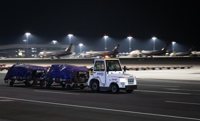 Çin’in orta kesimindeki Hubei eyaletinin Ezhou kentinde bulunan Ezhou Huahu Havalimanı’nda kargo transferi yapan personel, 25 Mayıs 2024. (Fotoğraf: Xiao Yijiu/Xinhua)Çin’in orta kesimindeki Hubei eyaletinin Ezhou kentinde bulunan Ezhou Huahu Havalimanı’nda uçağa kargo yükleyen personel, 25 Mayıs 2024. (Fotoğraf: Xiao Yijiu/Xinhua)Çin’in orta kesimindeki Hubei eyaletinin Ezhou kentinde bulunan Ezhou Huahu Havalimanı’ndaki transfer merkezinde kolileri ayıran personel, 25 Mayıs 2024. (Fotoğraf: Xiao Yijiu/Xinhua)Çin’in orta kesimindeki Hubei eyaletinin Ezhou kentinde bulunan Ezhou Huahu Havalimanı’nın görünümü, 25 Mayıs 2024. (Fotoğraf: Xiao Yijiu/Xinhua)Çin’in orta kesimindeki Hubei eyaletinin Ezhou kentinde bulunan Ezhou Huahu Havalimanı’nda uçağa kargo yükleyen personel, 25 Mayıs 2024. (Fotoğraf: Xiao Yijiu/Xinhua)Çin’in orta kesimindeki Hubei eyaletinin Ezhou kentinde bulunan Ezhou Huahu Havalimanı’nda uçağa kargo yükleyen personel, 25 Mayıs 2024. (Fotoğraf: Xiao Yijiu/Xinhua)Çin’in orta kesimindeki Hubei eyaletinin Ezhou kentinde bulunan Ezhou Huahu Havalimanı’nın görünümü, 25 Mayıs 2024. (Fotoğraf: Xiao Yijiu/Xinhua)