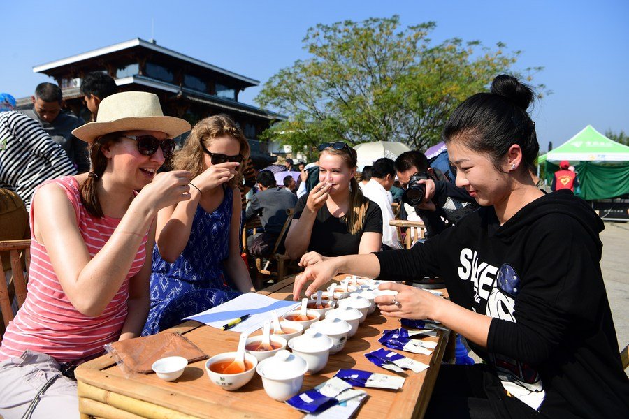 Çin’in güneydoğusundaki Fujian eyaletinin Wuyishan ilçesinde, Wuyi kaya çayı yapma tekniğinin tek kadın varisi olan You Yuqiong (sağda), oğlu Fang Zhou’ya Wuyi kaya çayı yapımında kullanılan elle karıştırma tekniğini öğretiyor, 1 Aralık 2022. (Fotoğraf: Wei Peiquan/Xinhua)Çin’in güneydoğusundaki Fujian eyaletinin Wuyishan ilçesinde, Wuyi kaya çayı yapma tekniğinin tek kadın varisi olan You Yuqiong (sağda), oğlu Fang Zhou’ya Wuyi kaya çayı yapımında kullanılan elle karıştırma tekniğini öğretiyor, 1 Aralık 2022. (Fotoğraf: Wei Peiquan/Xinhua)Çin’in güneydoğusundaki Fujian eyaletinin Wuyishan ilçesinde kırıntı pastası çayı yapma tekniğinin mirasçısı olan He Shi’an, Wuyi kaya çayını elle karıştırma ve bağlama tekniğini gösteriyor, 1 Aralık 2022. (Fotoğraf: Wei Peiquan/Xinhua)Çin’in güneydoğusundaki Fujian eyaletinin Wuyishan ilçesindeki bir çay tadımı yarışmasında Wuyi kaya çayını tadan yabancı ziyaretçiler, 28 Ekim 2017. (Fotoğraf: Wei Peiquan/Xinhua)
