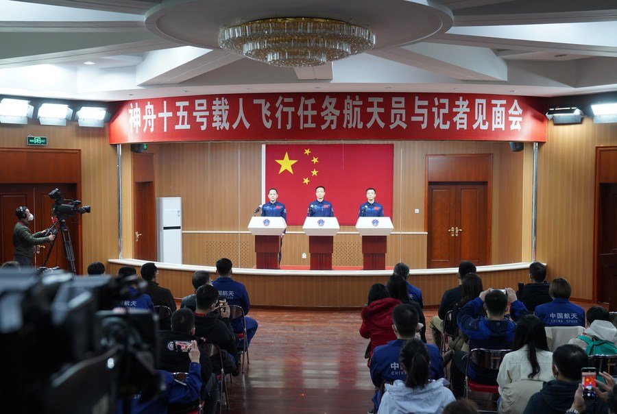 JİUQUAN, 28 Kasım (Xinhua) — Yaklaşan Shenzhou-15 misyonunun üç Çinli taykonotu Fei Junlong, Deng Qingming ve Zhang Lu Pazartesi günü basınla biraraya geldi. Çin İnsanlı Uzay Ajansı’nın Pazartesi günü yaptığı duyuruya göre, Shenzhou-15 insanlı uzay aracının, Çin’in kuzeybatısındaki Jiuquan Uydu Fırlatma Merkezi’nden Salı günü Beijing saatiyle 23.08’de fırlatılması bekleniyor.