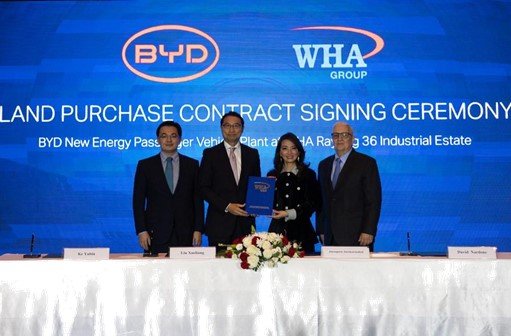Çinli otomobil üreticisi BYD, Tayland’da yeni bir elektrikli araç (EV) fabrikası kurmak için, bu Güneydoğu Asya ülkesinin sanayi bölgesi geliştiricisi WHA Grubu ile Perşembe günü bir arazi satın alma anlaşması imzaladı.