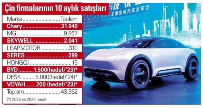 Son dönemde Çin markalarının Türkiye’ye ilgisinde belirgin bir artış gözleniyor. Bu durum, pazara giren firma sayısına da yansıyor. Türkiye otomotiv pazarında dünyanın lider elektrikli otomobil üreticisi BYD’nin de dahil olmasıyla Çin menşeli marka sayısı 9’a yükseldi. Skywell, MG, Chery Leapmotor, Seres, Vöyah, Hongqi, DFSK ve BYD gibi Çin markalar Türkiye’de satışa başladı.