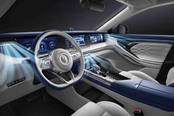 Otomotiv sektöründe eşi benzerine zor rastlanan; 3 gösterge ekranını kapsayan kokpit tasarımı, kapı kilitleri açılıp sürüşe geçildiğinde yerinden yükselirken, isteğe bağlı olarak sürüş esnasında minimalist bir konuma getirilebiliyor. 5 kişilik iç mekanda kademesiz ambiyans aydınlatma renkleri, parfüm desteği, ileri seviyede filtrelenen klima, masaj fonksiyonlu koltuklar ve daha birçok donanımla premium sürüş deneyimi sonuna kadar yaşatılıyor. Çok kapsamlı güvenlik donanımlarına ek olarak yarı-otonom sürüş desteklerindeki en güncel ekipmanlar da standart olarak sunuluyor.