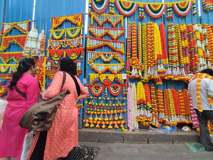 Festival öncesinde Mumbai şehrinin her yeri, göz alıcı ışıklarla ve Hindistan’a özgü renkli rangoli sanatıyla süslendi. İnsanlar, festivali kutlamak için havai fişek, renkli toz ve dekoratif malzemeler satın almak amacıyla yerel pazara akın ediyor.