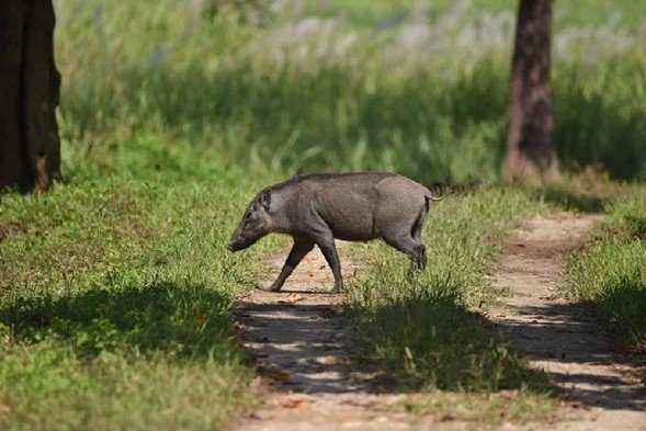 Hindistan’ın kuzeydoğusundaki Assam eyaletinin Golaghat bölgesinde bulunan Kaziranga Milli Parkı’nda bir yaban domuzu görülüyor. (Fotoğraf: Str/Xinhua)