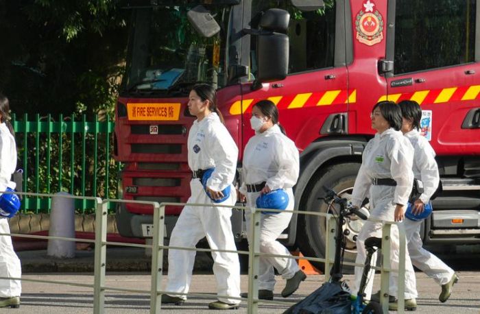 HONG KONG, 29 Kasım (Xinhua) — Çin’in güneyindeki Hong Kong’un Tai Po bölgesindeki Wang Fuk Court sitesine giren Afetzede Kimlik Tespit Birimi üyeleri, 28 Kasım 2025. Hong Kong Özel İdari Bölgesi Güvenlik Sekreteri Chris Tang Ping-keung, cuma günü düzenlediği basın toplantısında Hong Kong Polis Teşkilatı’nın, Tai Po’daki Wang Fuk Court adlı sitede çıkan yangınına dair 3-4 hafta sürmesi beklenen kapsamlı bir delil toplama ve soruşturma süreci yürüteceğini bildirdi. (Fotoğraf: Zhu Wei/Xinhua)