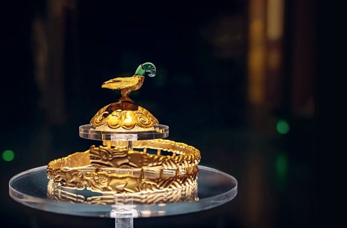 Günümüzde, binlerce yıldır günümüze kadar ulaşmış sayısız hazine, İç Moğolistan Müzesi’nde tarihin bir kanıtı olarak sergileniyor. Yukarıda, İç Moğolistan Müzesi’nde sergilenen, Savaşan Devletler Dönemi’ne (MÖ 475-221) ait kartal figürlü süslemeli altın taç görülüyor.