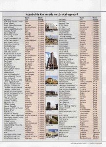 İstanbul İl Kültür ve Turizm Müdürlüğü’nden aldığımız bilgilere göre, şehirde işletme belgesi bulunan çeşitli sınıf ve kategorilerde 364 konaklama tesisi bulunuyor. Bu otellerin 47’si Anadolu yakasında hizmet veriyor. İstanbul’un Avrupa ve Anadolu olmak üzere iki yakasındaki otellerin toplam yatak kapasitesi ise 72 bin 410. Belediye belgeli konaklama tesislerinin toplam yatak kapasitesi ise 50 bin civarında. Hepsini üst üste koyduğumuzda İstanbul’un toplam yatak kapasitesi 120 bini aşıyor. Bu tesisler günümüzün ihtiyacı karşılamada yetersiz kalıyor. Önümüzdeki dönemde daha da artması beklenen ihtiyacın karşılanması yeni tesisler kurulmasını zorunlu hale getiriyor. İşte bu artan talebi karşılamak amacıyla Kültür ve Turizm Bakanlığı’ndan yatırım belgesi almış otel yatırımlarını araştırdık. Sonuçta İstanbul’da çoğunun inşaatı başlamış 125 yeni otel projesi ortaya çıktı.