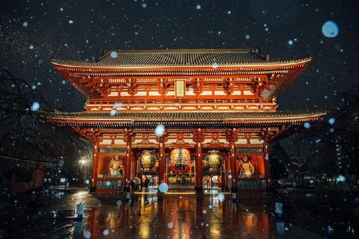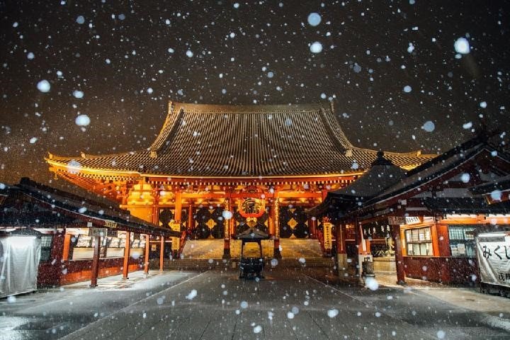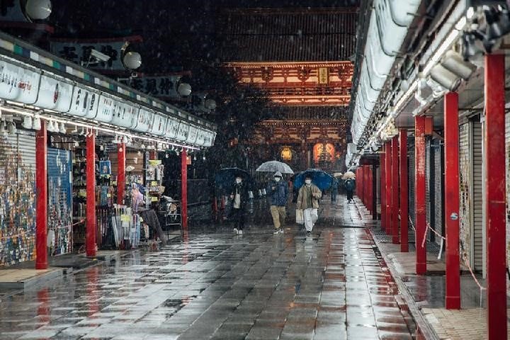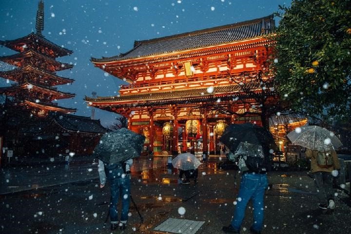 Japonya’nın başkenti Tokyo’da Perşembe günü yağan kar, Asakusa’daki antik Sensoji Tapınağı’na ayrı bir güzellik getirirken insanlar manzaranın keyfini çıkardı ve fotoğraf çekti.