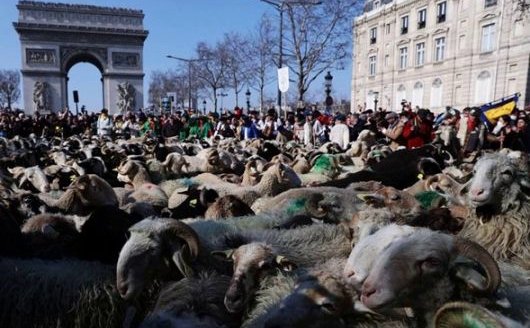 Fransa’nın başkenti Paris’te düzenlenen Uluslararası Tarım Fuarı (Salon de l’Agriculture) dün sona erdi. Fuarın sona ermesi dolayısıyla başkentin ünlü Şanzelize Caddesi’nde (Champs Elysees) toplam 2022 koyunla bir geçit töreni düzenlendi.