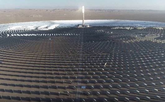 Xinhua muhabiri bulunduğu yer hakkında şu bilgiyi veriyor: “Burada Çin’in en büyük erimiş tuzlu güneş enerjisi santrallerinden birini görüyorsunuz. Her gün, gün doğumundan gün batımına kadar, 12 binden fazla süper ayna güneşi takip edecek ve elektrik üretmek amacıyla güneş ışınını 260 metre yüksekliğindeki erimiş tuz kulesine yoğunlaştıracak.”