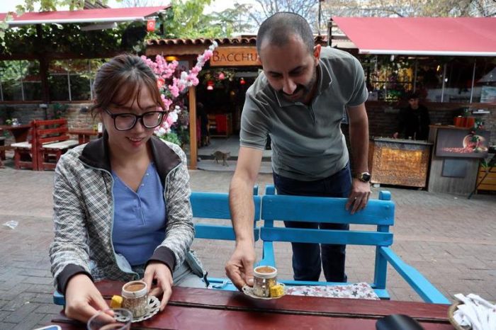 Hamamönü’nde yıllardır kahve yapan Aksu, Çin’den gelen turistlerin ilgisinden oldukça memnun. Aksu, gülümseyerek, “Çin, Kore, Japonya ve Endonezya’dan gelen ziyaretçiler çok oluyor ama özellikle Çinli turistler bizim kahvemizi daha çok beğeniyor. Bazıları burada video çekip sosyal medyada paylaşıyor ve sonra Çin’den başkaları da geliyor. Hatta bazıları beni arayıp ‘Sizin gibi yapabildik mi?’ diye soruyor” diyor.