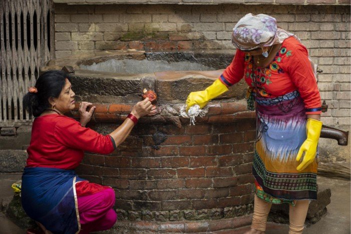 (LALİTPUR-Xinhua) — Newar topluluğu, su birikintileri, kuyular ve taş musluklar gibi su kaynaklarını temizleyerek muson mevsiminin başlangıcını Sithi Nakha Festivali’yle kutluyor. İnsanlar bu festival için atalarının tanrısına adak olarak Bara ve Chatamari denilen geleneksel gözlemeler de hazırlıyorlar.