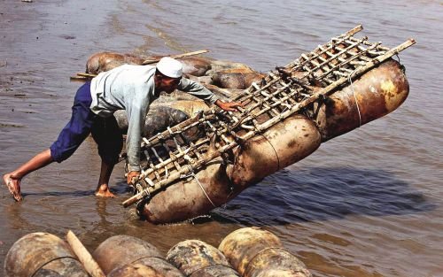 Her sal, dikdörtgen bir ahşap çerçeveye bağlanmış 48 adet ince ahşap sırıktan yapılmıştır ve aşağıya yaklaşık 14 adet şişirilmiş keçi postu sabitlenmiştir. Koyun derisi salın gücü olmadığı için, sadece nehir boyunca akabilir ve akıntıya karşı gidemez. Dönüş yolculuğunda, geri taşınabilecek kadar hafif ve esnektir.