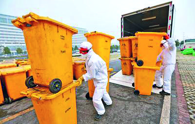 Şubat ayının ikinci yarısında Hubei’de günlük tıbbi atık hacminde bir patlama yaşandı. Eyaletin salgın öncesinde 136 ton olan günlük tıbbi atık hacmi 458 tona çıktı. Bu atığın düzgün ve hızlı bir şekilde ortadan kaldırılamaması, salgın önleme ve kontrol çabalarına ciddi zarar verecekti. Bu durum karşısında yerel yönetim yeni arıtma tesislerinin kurulması, mobil tesisler oluşturulması, sınai çöp yakma fırınlarının teçhizatlandırılması, tıbbi atıkların işlenmek üzere Wuhan’dan komşu illere nakledilmesini de içeren çeşitli tedbirler aldı.