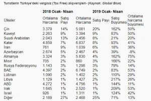 Global Blue’nun Türkiye verileri, vergisiz alışverişte Çin’in liderliği sürdürdüğünü ortaya koyuyor. Geçen yılın Ocak-Nisan aylarında ortalama harcaması 3 bin 379 dolar olan Çinli turistin bu yılın aynı dönemindeki ortalama harcaması 5 bin 81 dolara ulaştı. Bu da Çinli turistin satın almasının geçen yıldan yüzde 162’lik bir büyüme kaydettiğine işaret ediyor.