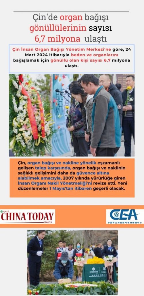 Çin İnsan Organ Bağışı Yönetim Merkezi’nin resmi internet sitesine göre, Mart 2024 itibarıyla ülkede hayatını kaybeden vatandaşlardan toplam 51.600 organ bağışı gerçekleştirilirken, 158.600 adet büyük organ bağışlandı.